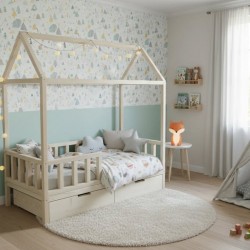 Łóżka wykonane są z drewna drzew iglastych oszlifowanego z zaokrąglonymi kantami malowane farbą antyalergiczną z atestem, idealną dla dzieci i dorosłych.
