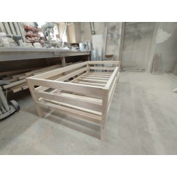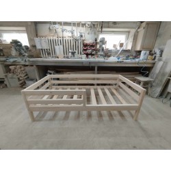 Łóżeczko o wymiarach pod materac 180x100 cm nie malowane z barierkami poziomymi dookoła i stelażem drewnianym