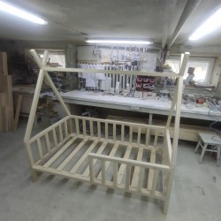 Oferta dotyczy łóżeczka TIPI o wymiarach pod materac 160x70 cm NIE MALOWANEGO z barierkami dookoła i stelażem drewnianym