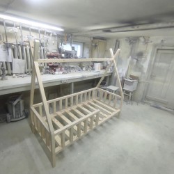 Łóżka wykonane są z drewna drzew iglastych oszlifowanego z zaokrąglonymi kantami malowane farbą antyalergiczną z atestem, idealną dla dzieci i dorosłych.