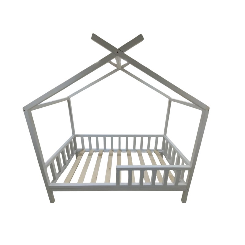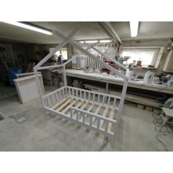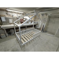 óżeczko z daszkami TIPI o wymiarach pod materac 180x70 cm z barierkami dookoła malowane standardowo białe (kolor do wybory) i stelażem drewnianym