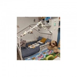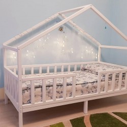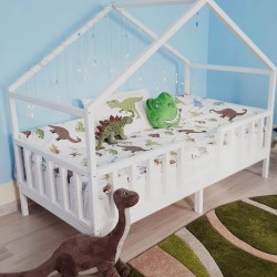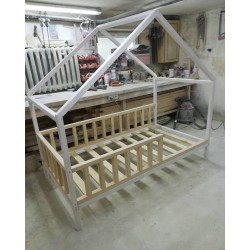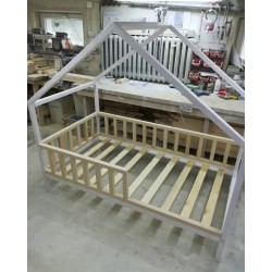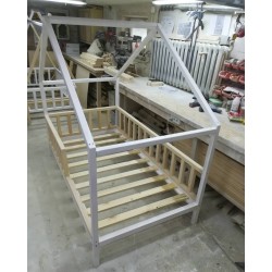 Aukcja dotyczy łóżeczka DOMEK 3 z daszkiem od przodu o wymiarach pod materac 180x80 cm kolor biały (kolor do wyboru przy zamówieniu) z barierkami dookoła i stelażem drewnianym nie malowanym