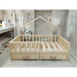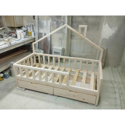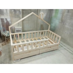 Łóżeczko PÓŁDOMEK o wymiarach pod materac 150x80 cm NIE MALOWANE z barierkami dookoła oraz szufladą albo szufladami (do wyboru) i stelażem drewnianym