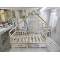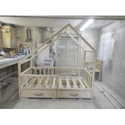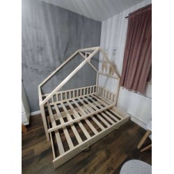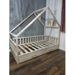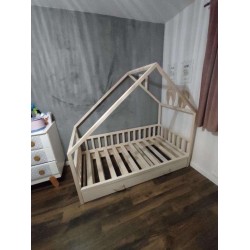 Łóżeczko DOMEK II o wymiarach pod materac 160x70 cm NIE malowany z szufladą albo szufladami (do wyboru) i stelażem drewnianym nie malowanym