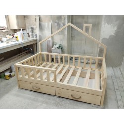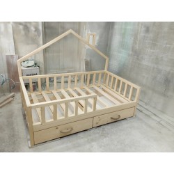 Łóżeczko PÓŁDOMEK o wymiarach pod materac 180x100 cm NIE MALOWANE z barierkami dookoła oraz szufladą albo szufladami (do wyboru) i stelażem drewnianym